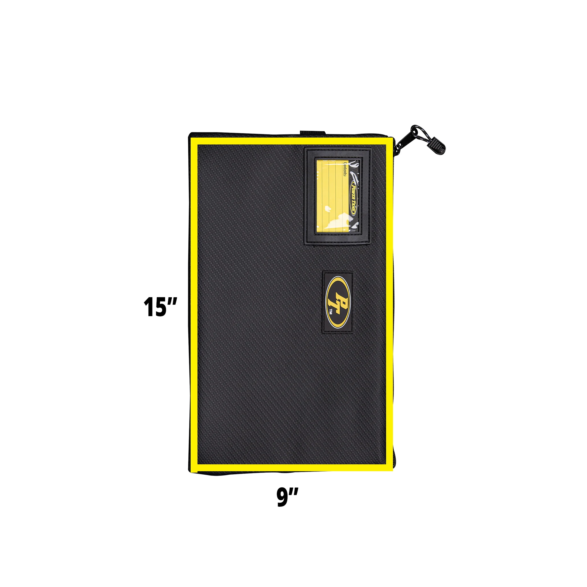 - Bright yellow interior w/ inner divider to help you search